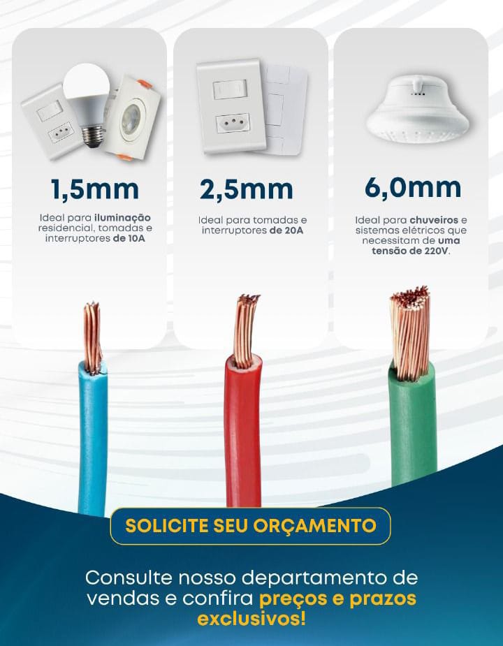 Cabo Flexível Certificado Inmetro 450/750v 1,00mm² / 1,5mm² / 2,5mm² / 4,0 mm² / 6,0mm² / 10,0mm² / 16,0mm²/25mm/35mm