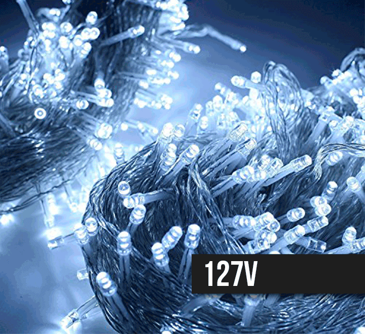 Cordao 100 Leds Fixo Branco Frio 10 Mts Blindado M/f 24Pç 220v ou 110v