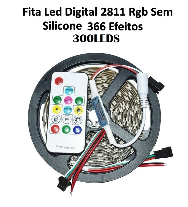 Fita Led Digital 2811 Rgb Sem Silicone 300 Leds 366 Efeitos