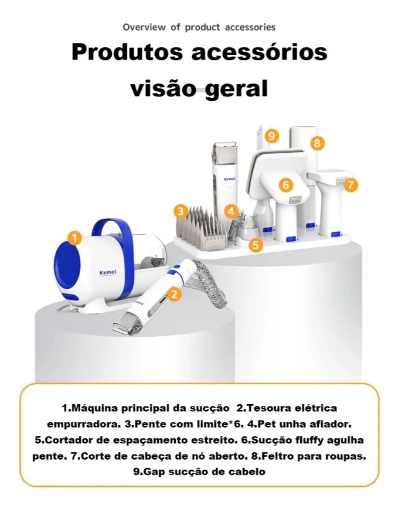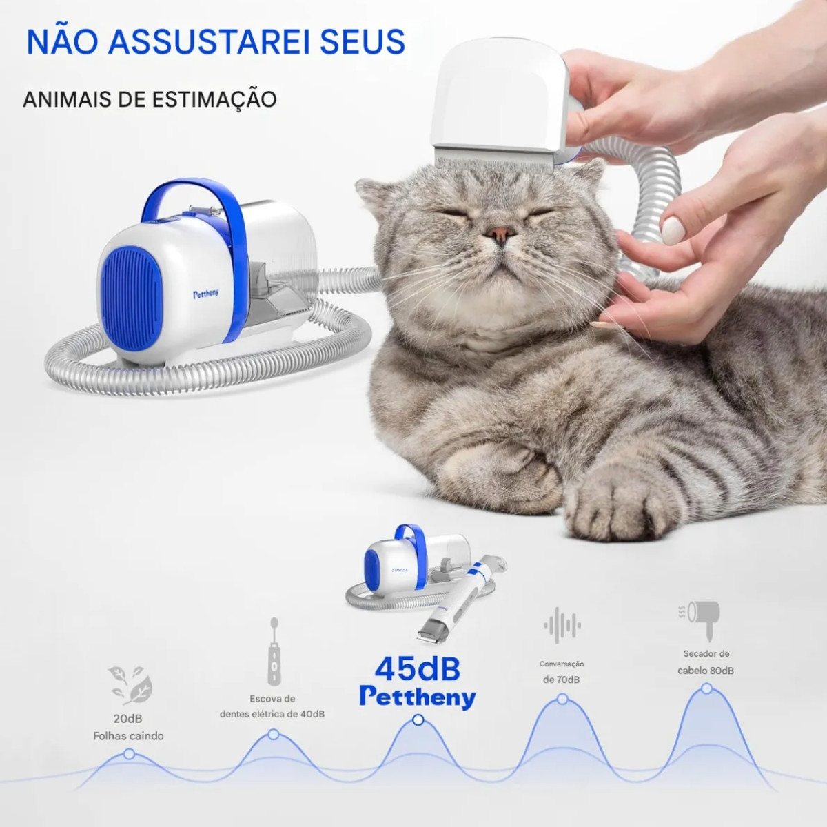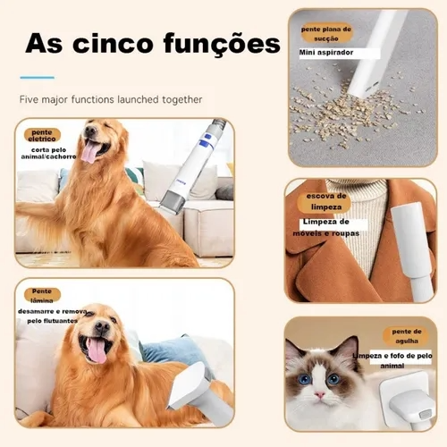 Aspirador: Conta com 3 níveis de sucção Mesmo com 300w de potência, esse aspirador é extremamente silencioso não assustando o seu pet. Permite um alta mobilidade, pois sua mangueira tem 1,50m e seu cabo de energia 2,65m de comprimento.