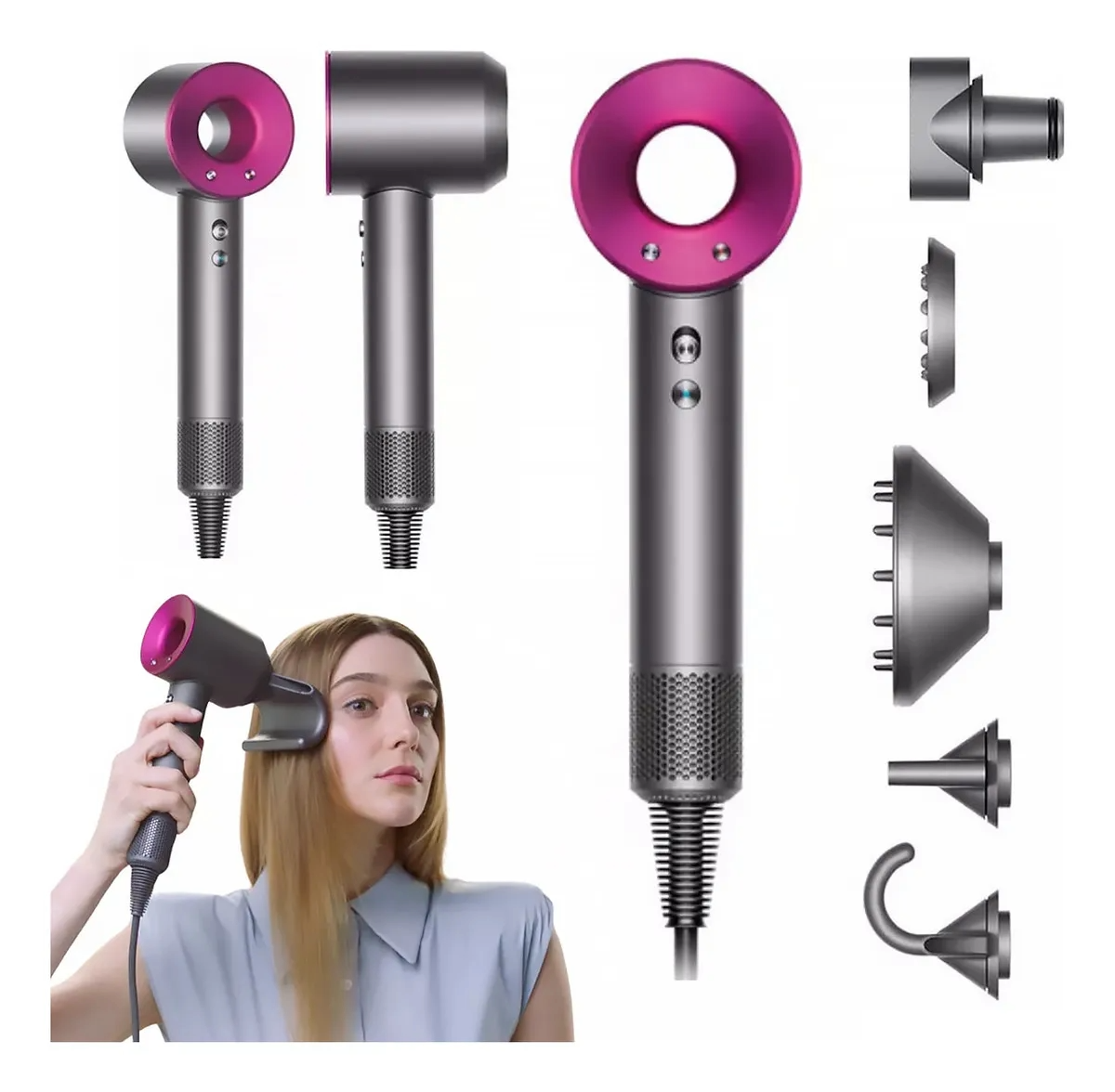 Secador de Cabelo 110V Supersônico Profissional 1600W Multifuncional 5 Tipos de Bocais LED Indicativo e Controle de Velocidade Tecnologia de Ar Múltiplo